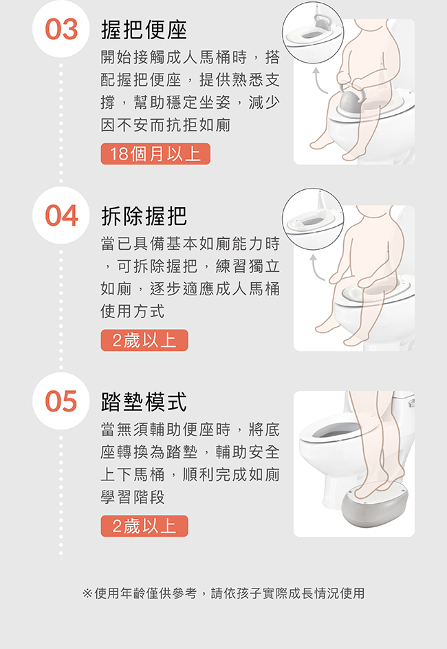 作為馬桶便座使用時,請再次確認穩固度,並協助幼童安全上下