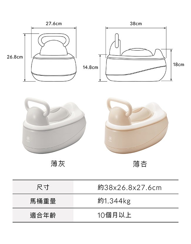 螺絲/鐵適用年齡10個月以上尺寸約38×26.8×27.6cm使用方式安裝握把時,請將卡榫對準便座溝槽導入,再鎖上兩顆螺絲固定