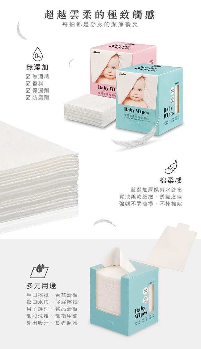 小獅王辛巴Simba 嬰兒乾濕兩用巾 80抽