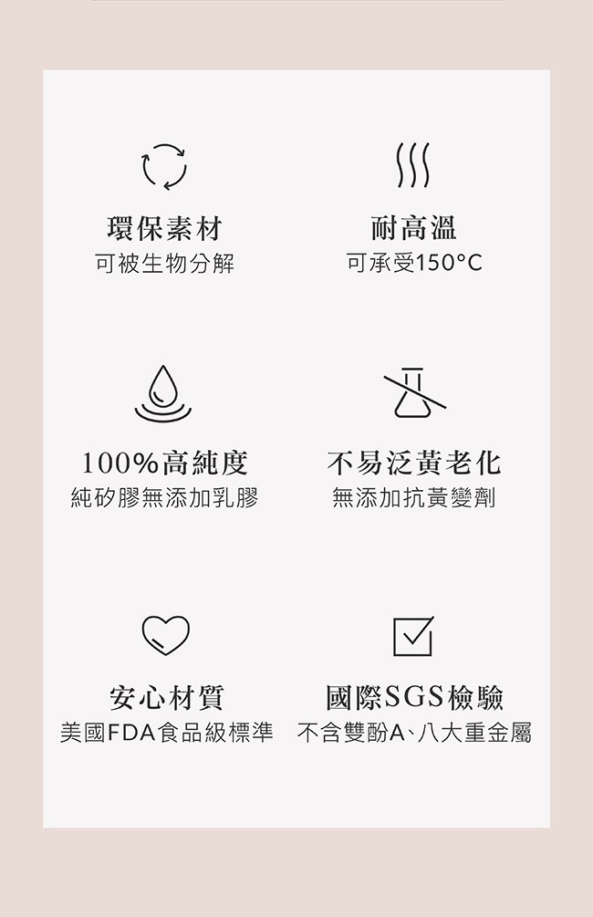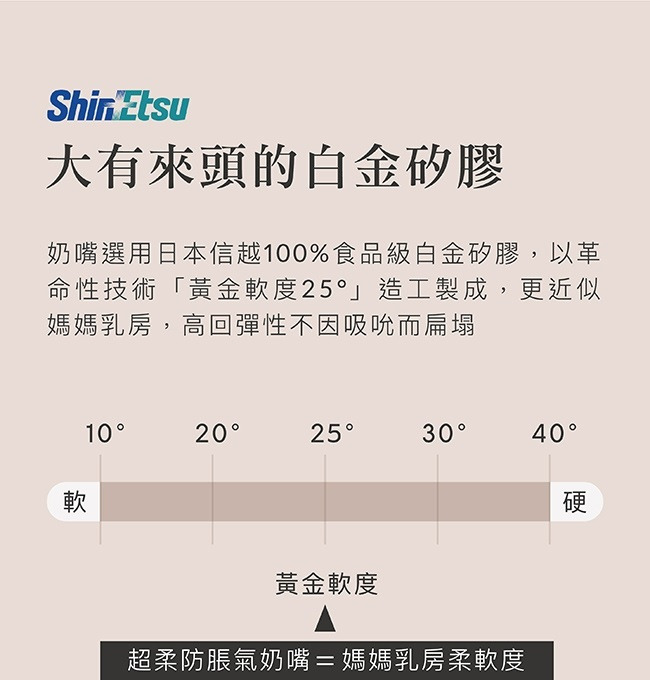 ●選用日本信越100%食品級白金矽膠,高回彈性不因吸吮而扁塌。