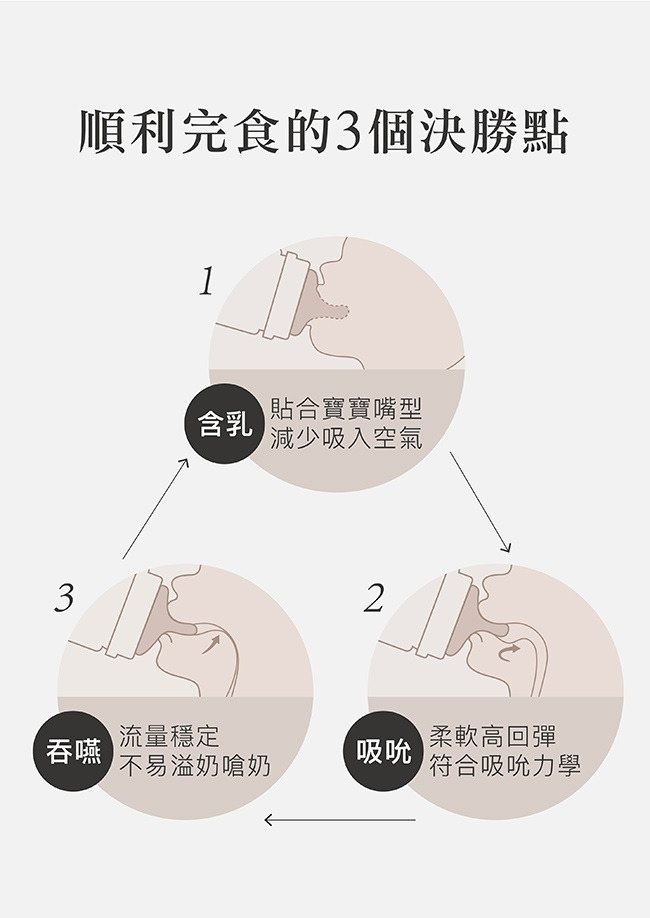 ●高度還原母乳餵感,奶嘴黃金比例長度、柔軟觸感、模擬乳暈霧化設計。