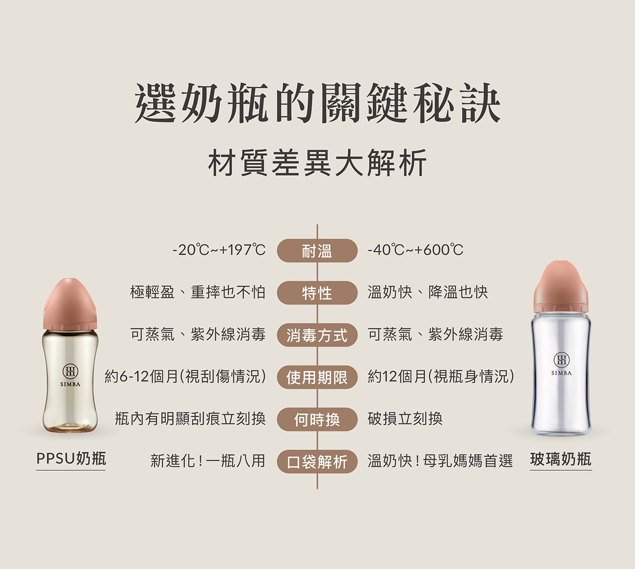 奶瓶容量、奶嘴尺寸、配件業界規格最齊全。
