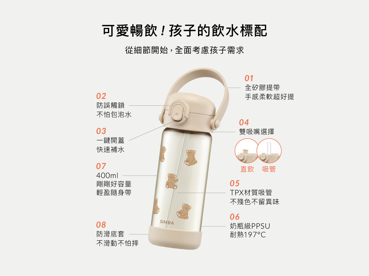 ●吸管型/直飲型兩種選擇,學飲成長更到位。