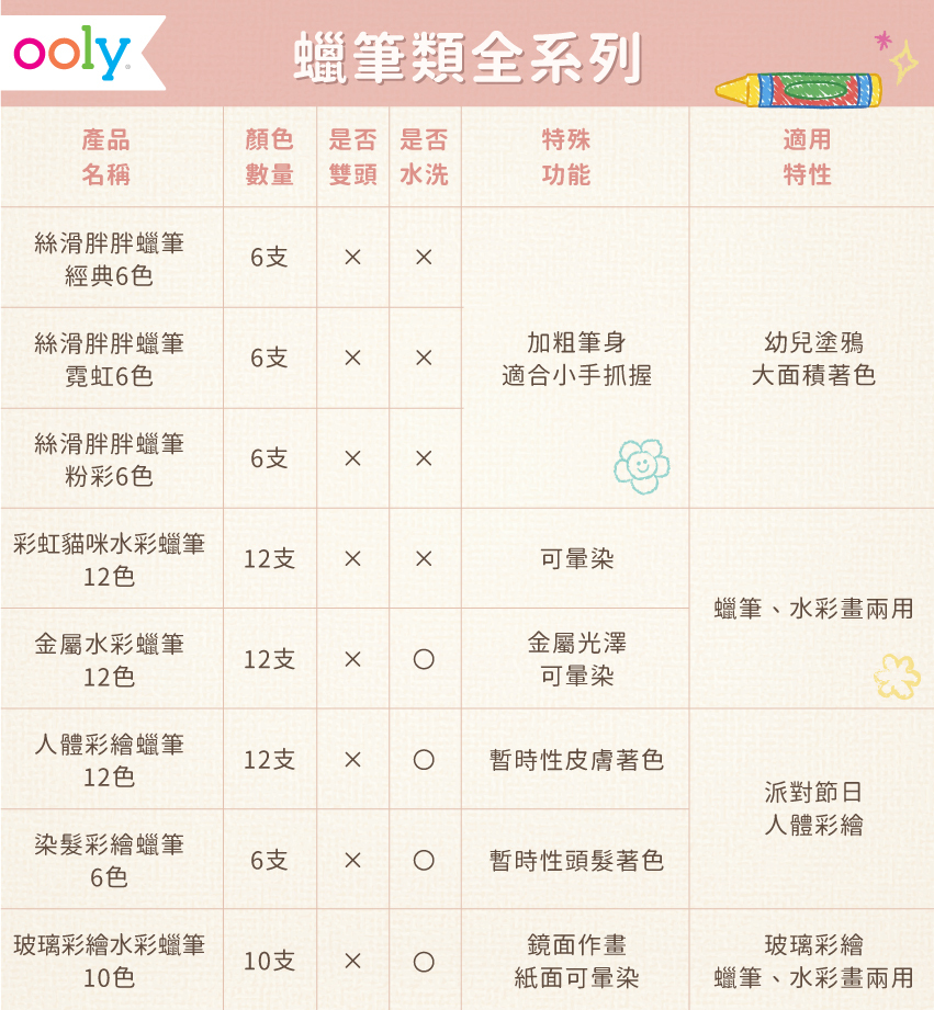 ● 8色加粗筆桿,符合幼兒抓握習慣