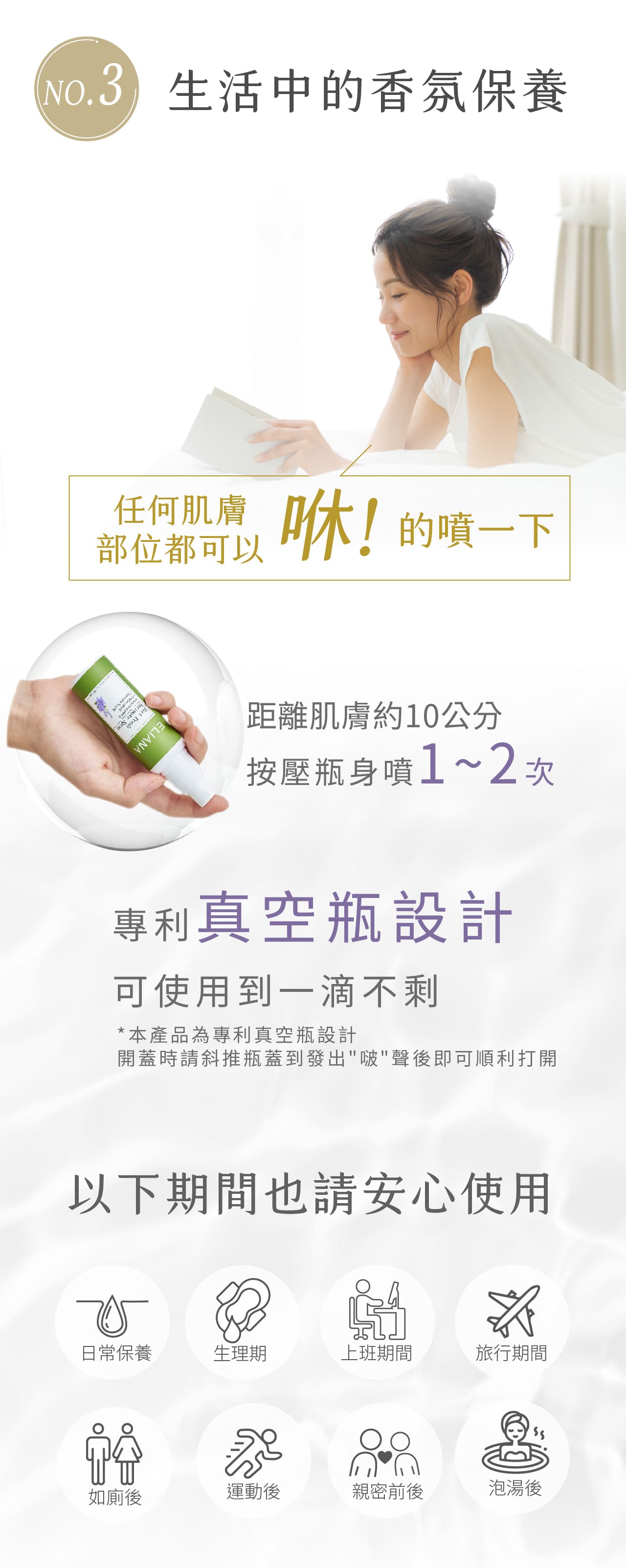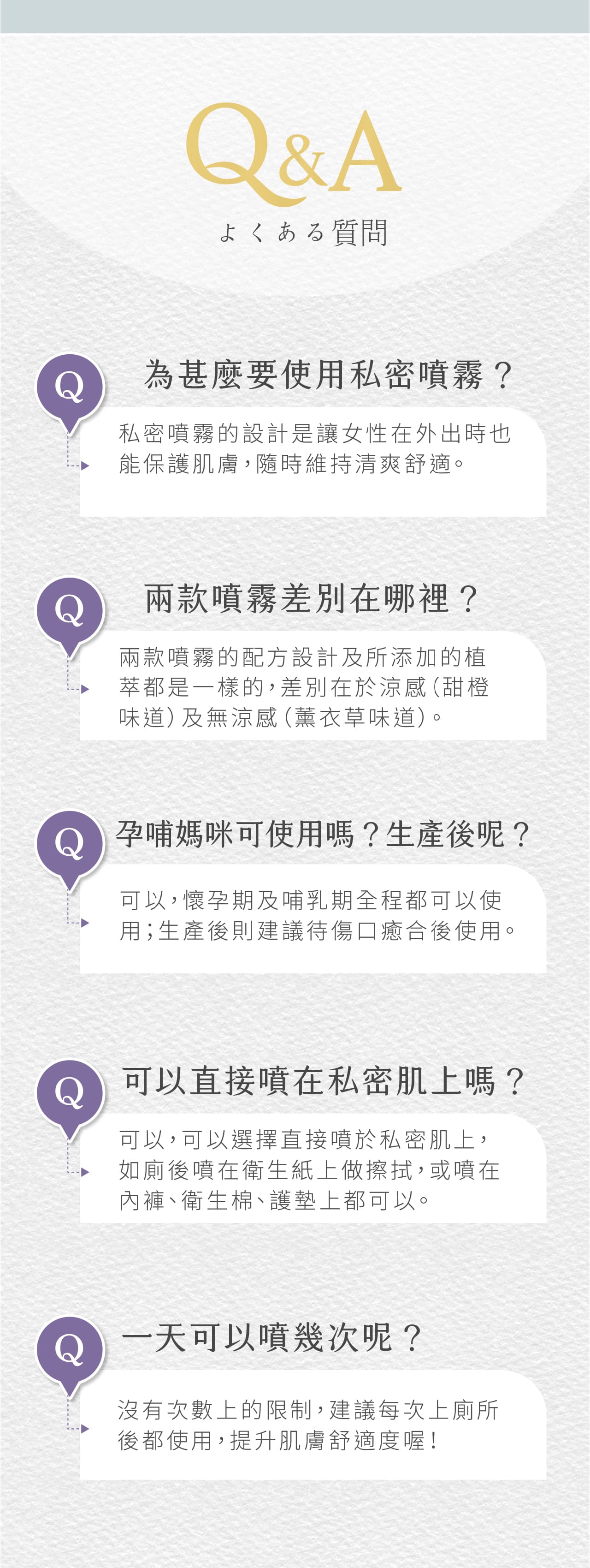 生理期、親密前後、泡湯後、運動後、上班久坐或旅行皆可做日常保養使用