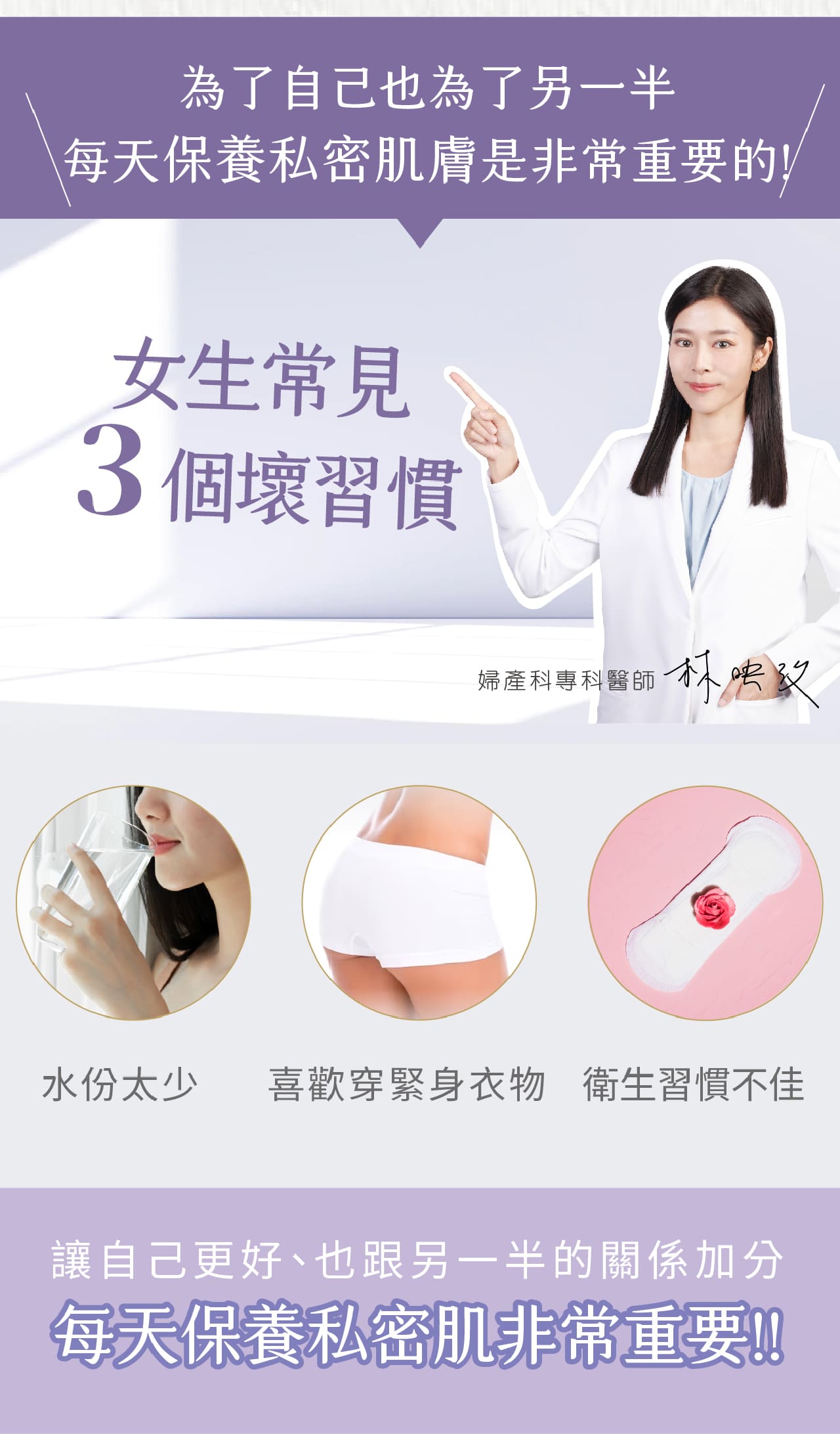 • 首波私密保養系列,以日常保養、隨身防護、美白緊緻、滋養護理、私密衣物清潔,打造出全天候私密肌保養對策