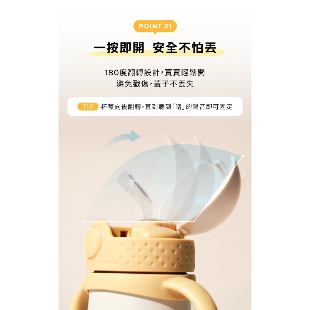 👉手把為旋轉設計,方便讓爸媽幫寶貝轉到可以喝到水的角度,