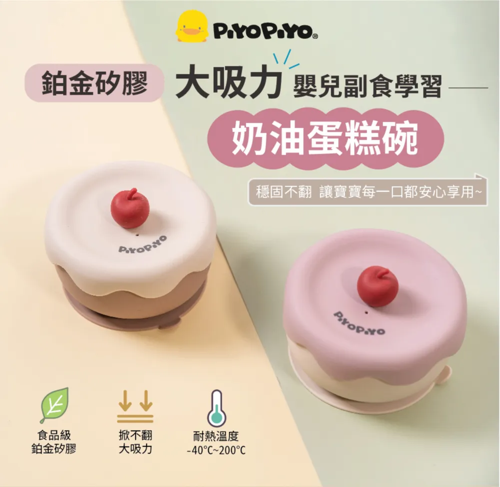 黃色小鴨PiYO PiYO 鉑金矽膠大吸力嬰兒副食學習蛋糕碗蓋