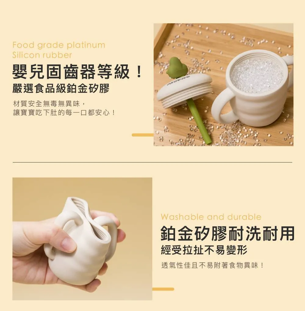 ●嚴選食品級鉑金矽膠,嬰兒固齒器等級!材質安全無毒無異味、無懼寶寶啃咬,讓寶寶喝下肚的每一口都安心;鉑金矽膠耐洗耐用,經受拉扯不易變形,透氣性佳且不易附著食物異味。
