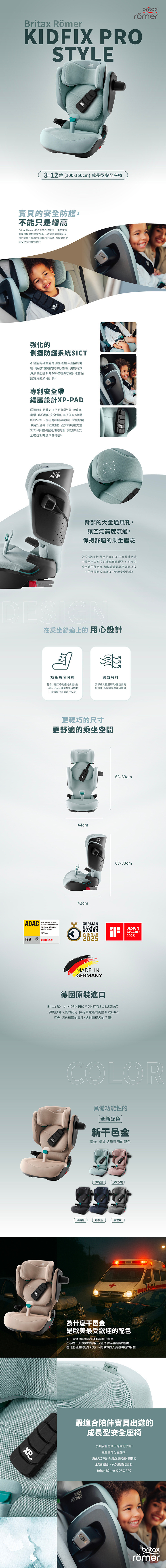 材質:金屬、塑料、緩衝泡綿尺寸:63-83(汽座高度)x44(寬度)x42(深度)cm包裝尺寸: 長47寬46高73公分重量:6.7kg最大乘載重量:36kg以下適用年齡:3-12歲數量:單台產地:英國品牌 德國製造