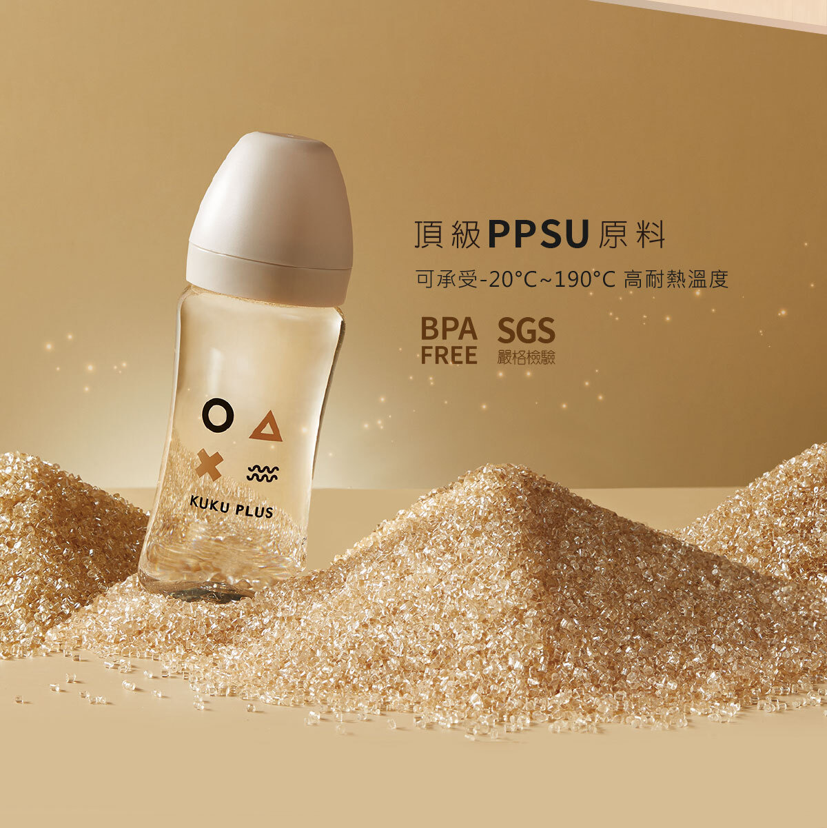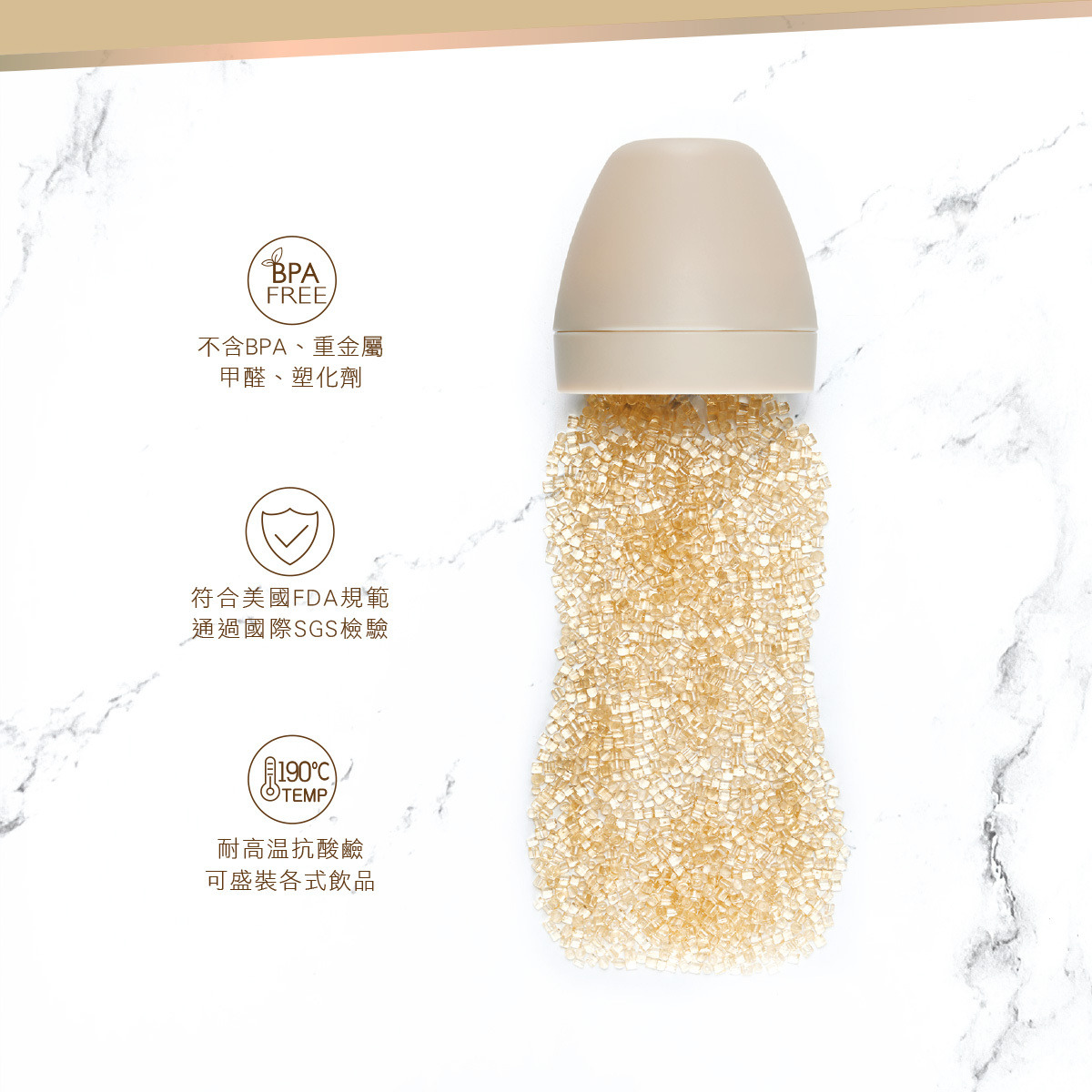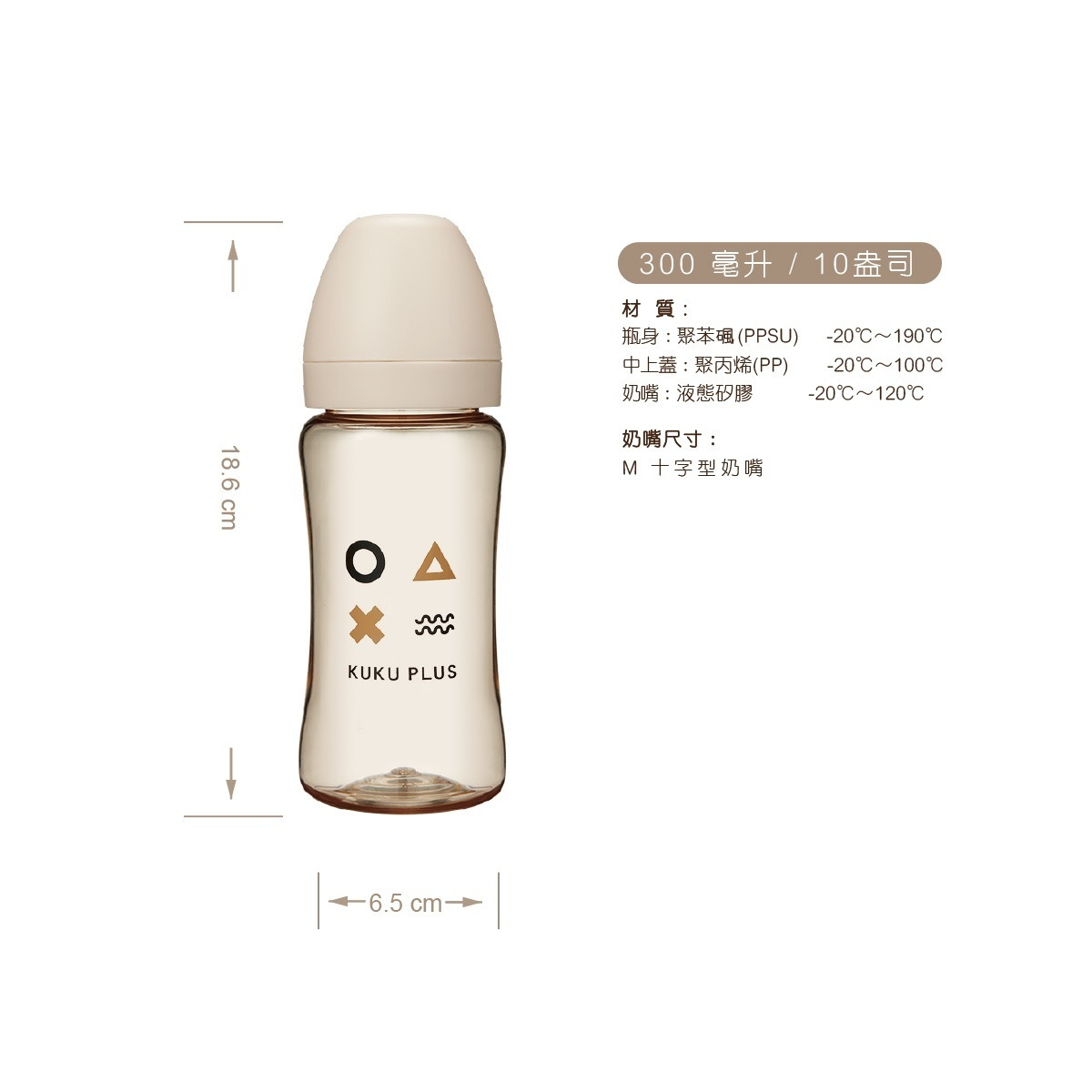 ●嚴選頂級PPSU材質製成,符合FDA標準醫療級材質,不含雙酚A,輕盈抗摔,可耐190℃高溫並可反覆以蒸汽消毒。防脹氣設計可降低氣泡產生,減少吸入過多空氣而造成的脹氣及不適。