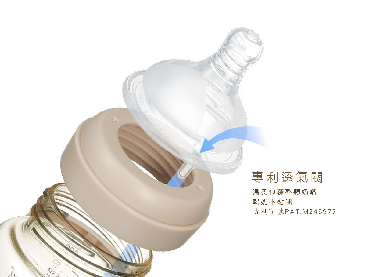 ●採醫療級22度超柔軟白金矽膠,乳房曲線及顆粒,模擬真實親餵感受。專利透氣閥搭配導流氣體獨家技術,讓寶貝輕鬆完食不脹氣。
