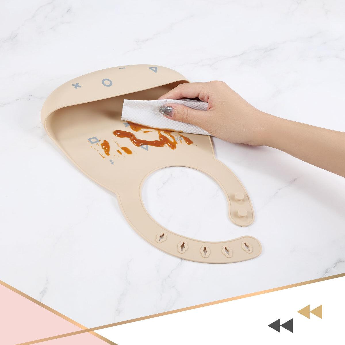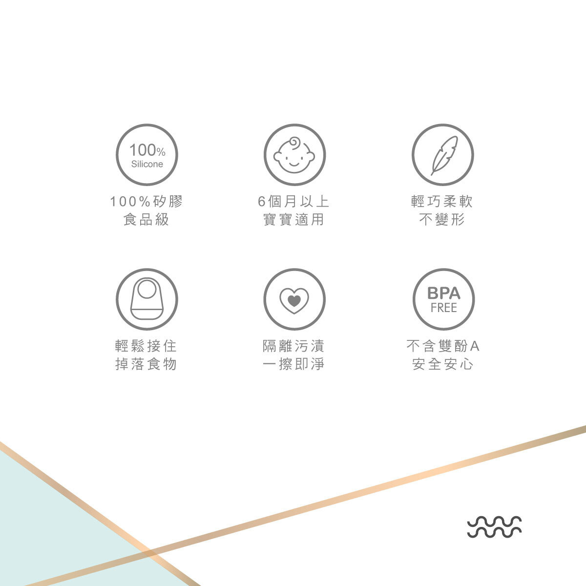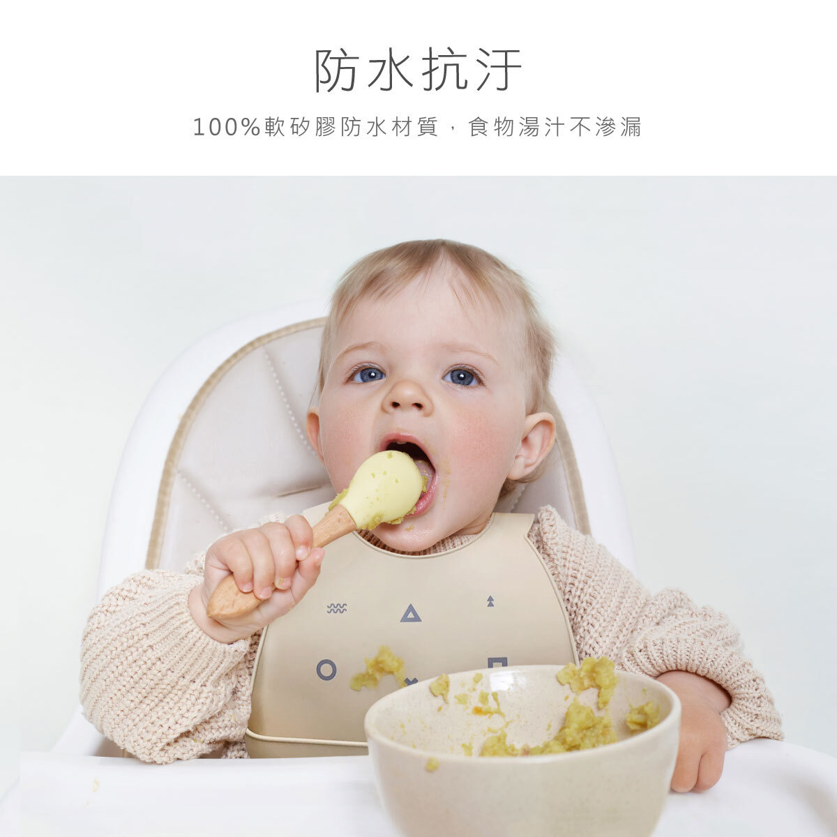 ●防水抗汙-100%軟矽膠防水材質,食物湯汁不滲漏