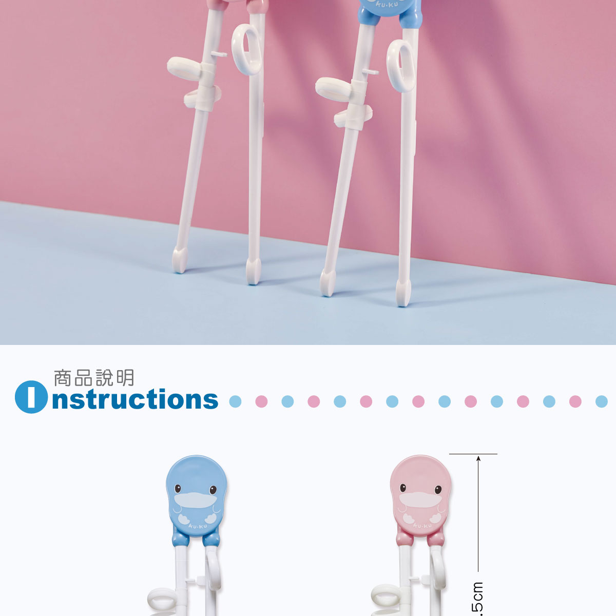 適用年齡:2歲以上材質標示:ABS 樹脂 (耐溫80℃)∕矽膠 (耐溫120℃)尺寸:長約18.5 公分數量:1雙入產地:中國使用與保存方法:使用前後請用清水洗淨,勿用硬質清潔刷避免刮傷產品。注意事項:˙洗碗機和微波爐不適用,不可以使用沸水或微波消毒,請勿過度用力拉扯筷子,請在大人監督下使用。