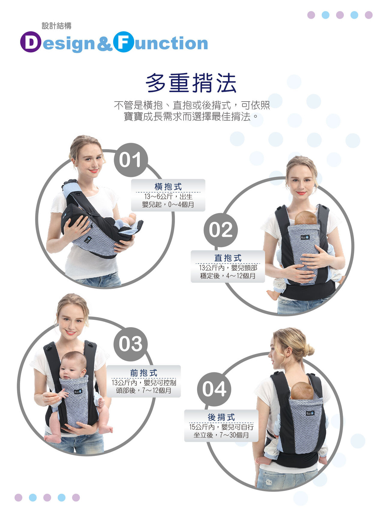 橫抱式:約3~6公斤,出生嬰兒起, 0~4個月。
