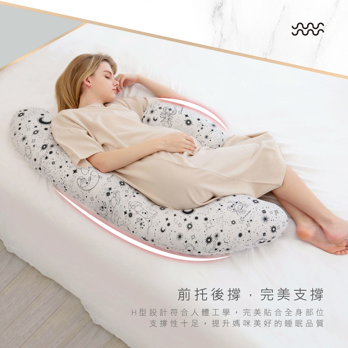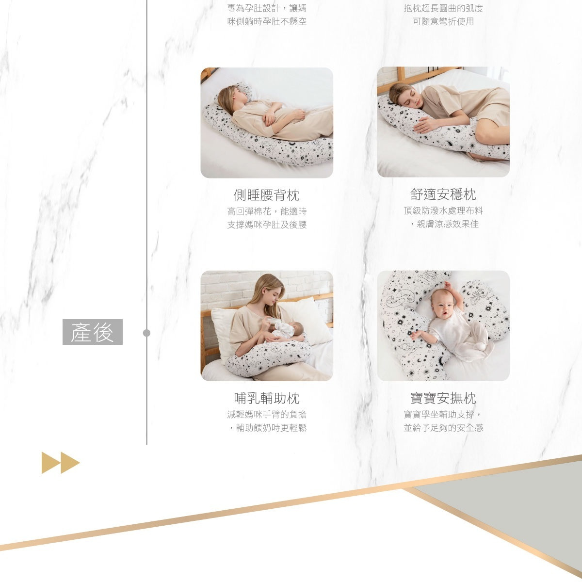 ●雙側釋壓-附有可拆式支撐小枕,可雙側釋壓完整支撐全身,舒緩孕期腰背酸痛。