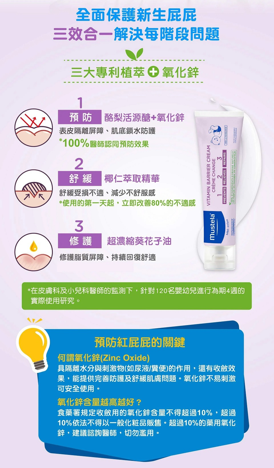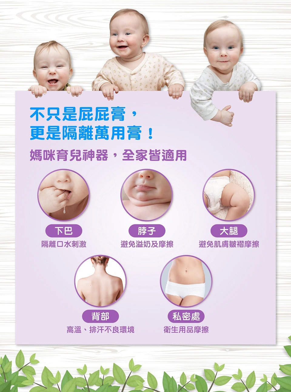用途:先塗抹微厚一層於乾淨肌膚,再換新尿布。