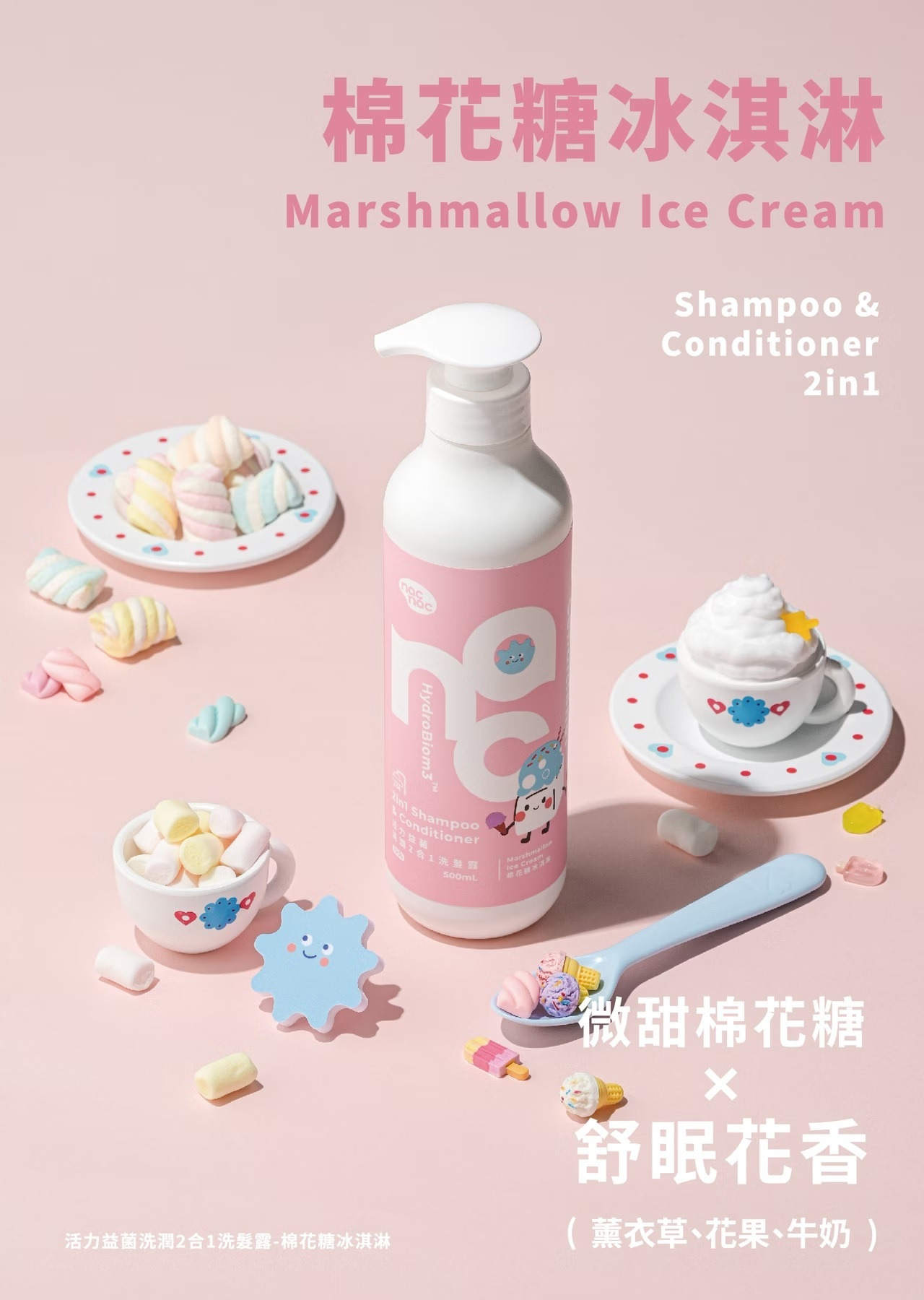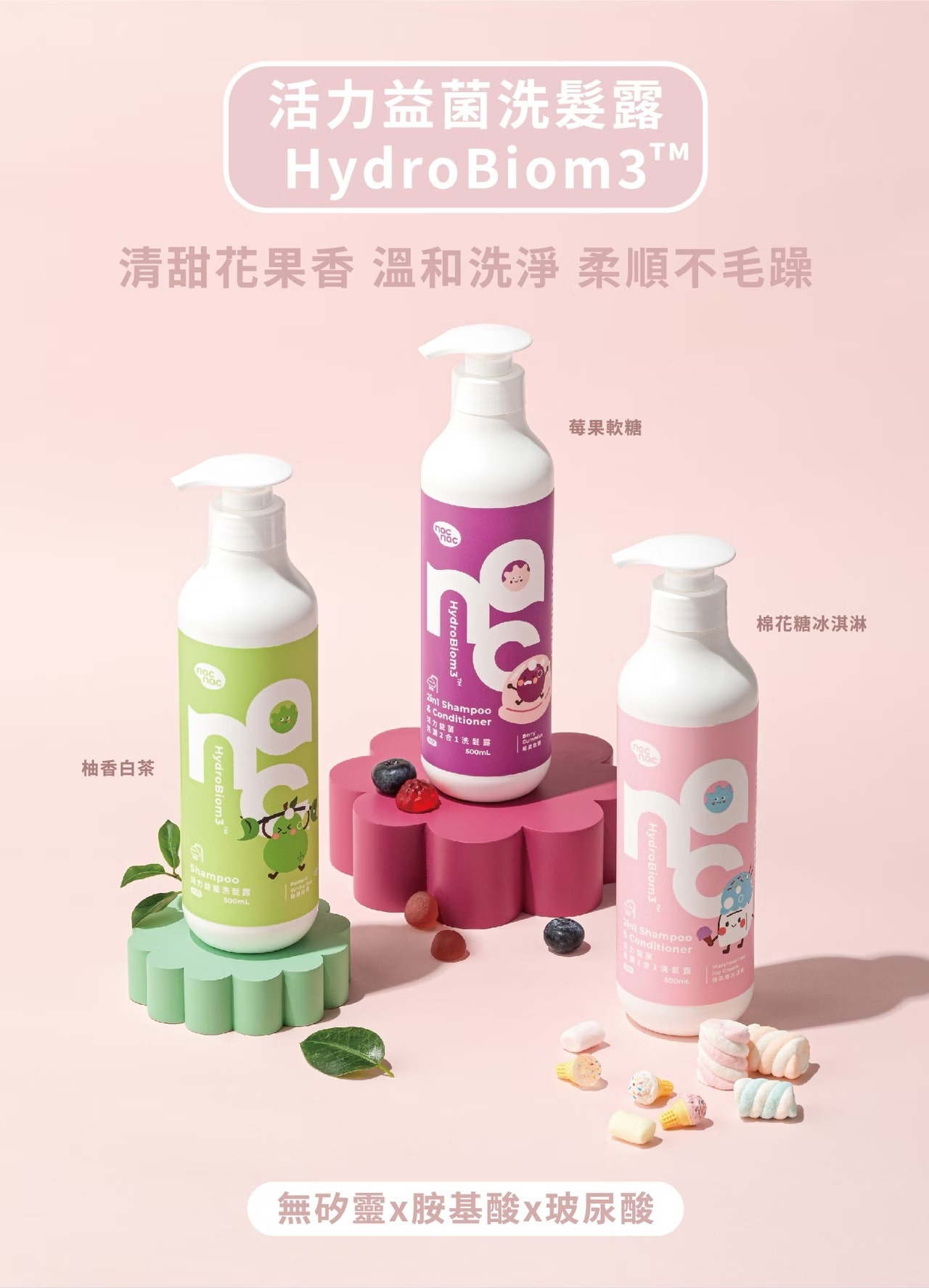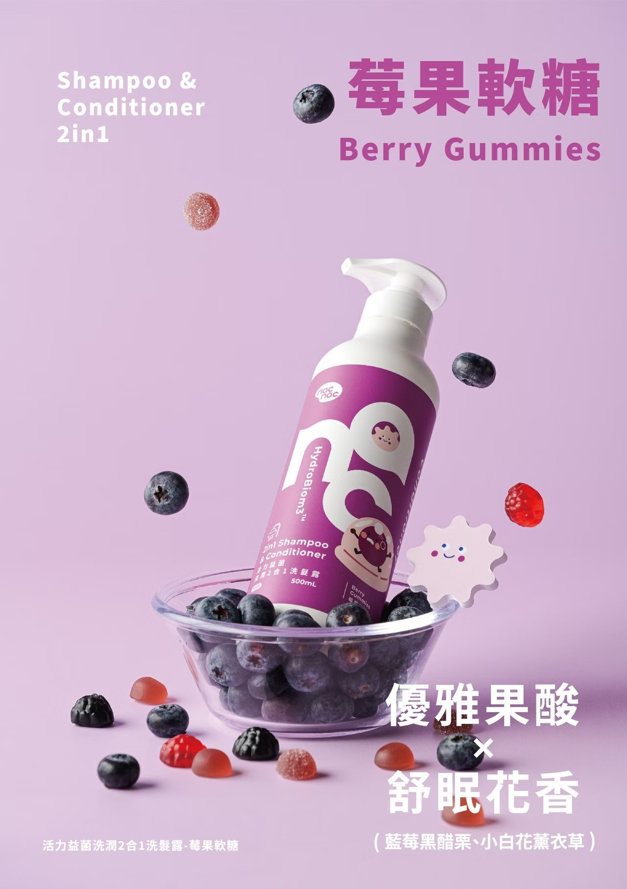 nac nac 活力益菌洗潤2合1洗髮露 500ml (棉花糖冰淇淋/莓果軟糖)|嬰童兒童洗沐