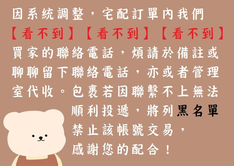 ▪️務必於備註處留下「聯絡電話」或「管理室代收」