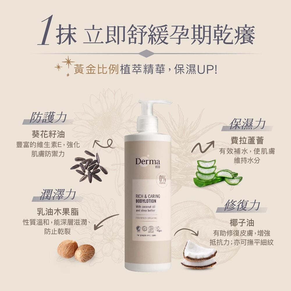 丹麥德瑪 Derma Eco有機蘆薈撫紋保濕乳 400ml