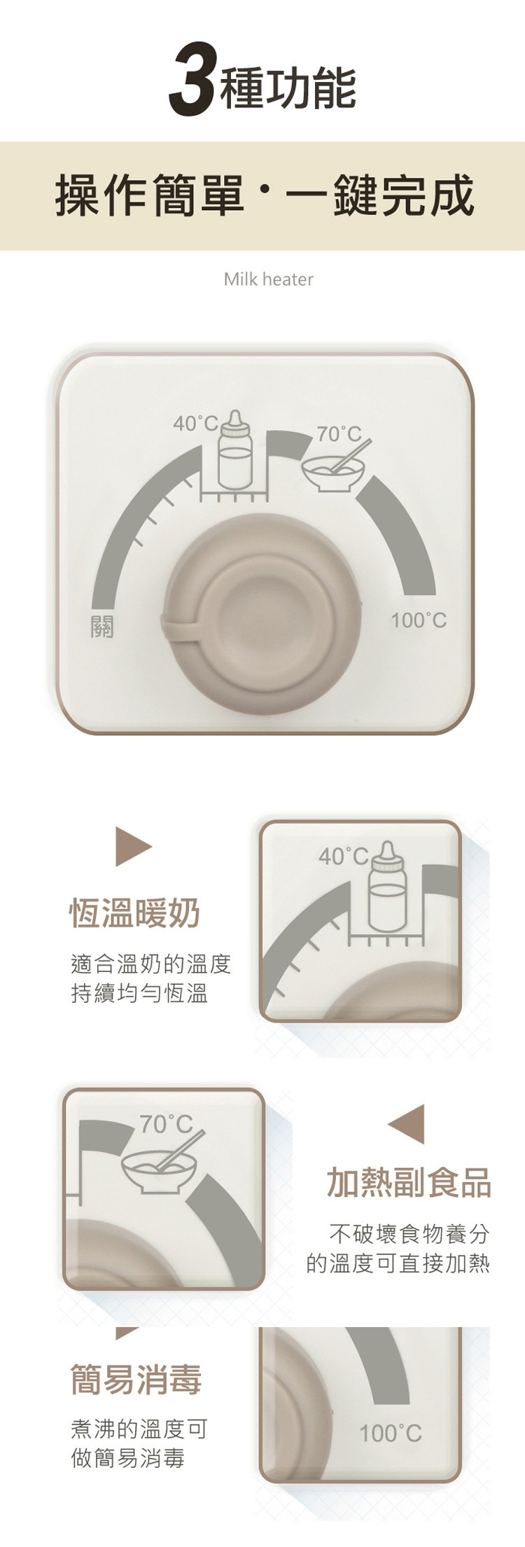●恆溫暖奶-恆溫均勻加熱母乳,在適當溫度持續保溫,使用方便。